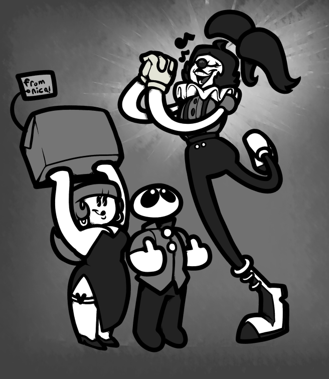 There exists an old school theater hall that was once a vibrant and lively place full of shows and attendees. It’s now the home of our black and white rubberhose cartoon actress Vtuber BallyBroadBips. There she brings back the old school ways of performing alongside her two mascots; sentient floating masks named Carmilla Comedy and Tabitha Tragedy. Together the three of them engage in all kinds of slapstick shenanigans on and off the stage.