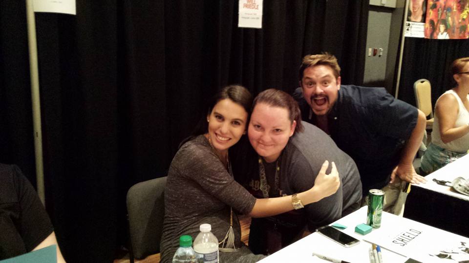 After my wife gets Cristy’s autograph they pose in order to take a photo and I’m behind the camera. This is my first event with a bulky camera so my skills with the device were not nearly as great as they are now, which I’m still working on improving. I’m about to take the picture and Will Friedle jumps from his table to behind Cristy and my wife and they have no idea. Now I’m resisting the urge to laugh but it was not easy so I realized I have two choices. I can either focus on trying to maintain a poker face or I can focus on keeping my hands still. I wanted to take a good picture so I focused on my hands with a goofy grin on my face and took the photo.