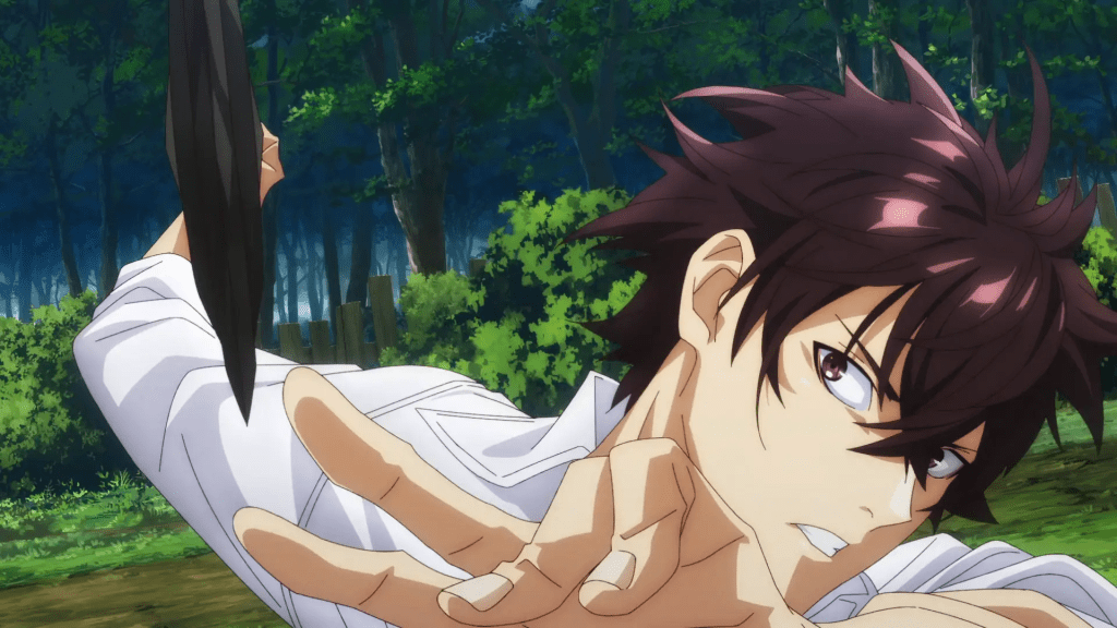 Prior to gaining his powers and still in his weakest form Yuya tries to protect a woman named Kaori out of the kindness of his heart. Turns out she was very well connected and as a token of thanks she extends an invitation for Yuya to attend Ousei academy a very prestigious school for future elites. His life in the real world is where a lot of the slice of life moments of the anime happen as he relies on Kaori to adjust to the new academy and the people within. The characters introduced here are all incredibly kind and entertaining filling various roles that you’ll see in most slice of life shows like the potential love interest, best friends, the awkward show off etc. What I liked about this part was that the strength of Yuya’s character was what shined the most here. Sure he used his new powers to pull off amazing feats but in the end it was his personality that won over the hearts of his peers and it was really cool to see that even with all of these larger than life powers they often played second in the eyes of the supporting cast as they often just were impressed by his willingness to help more than anything as they face several different scenarios. I also especially like the dynamic between Yuya and Kaori as they clearly function as the awkward potential love interests and it’s fun to see how these two characters bond.