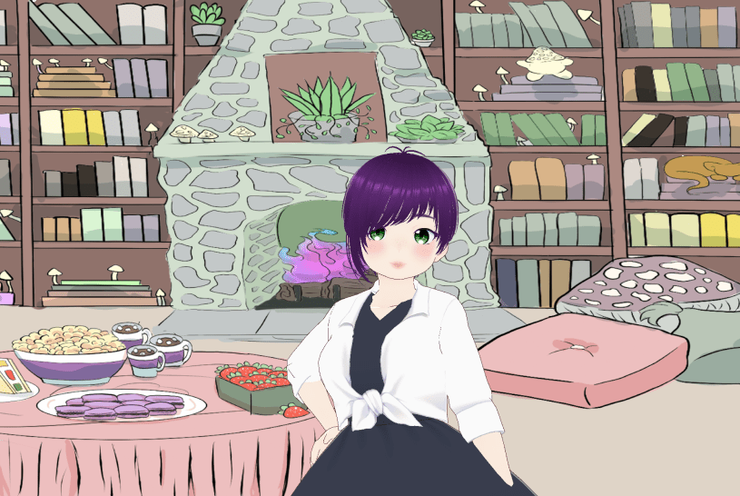 When you open the door you’ll immediately see a living room that opens up to an infinite series of rooms. Every lost and lonely soul has a unique need to feel at home and The Cottage has a room perfect for you. As she finds more people to take into her care The Cottage creates a new room to serve as the perfect way to welcome newcomers into her community. Her personal favorite room is the library and who knows maybe she’ll read you a story sometime. A beautiful room full of every story known to human and fae and nurtured with the warmth of of a fireplace lit with faerie fire. Perfect for keeping warm and cozy but will never burn the pages of the books held nearby.